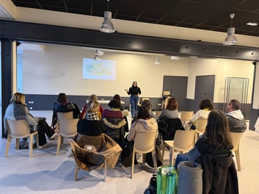 En petits groupes, chacun dispose de quelques minutes pour se présenter, partager son activité, ses besoins, ou simplement échanger sur les pratiques du bien-être.