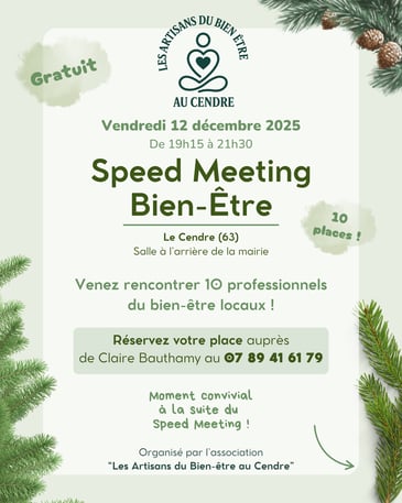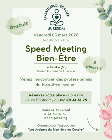 Le Speed Meeting Bien-Être est une rencontre participative organisée par Les Artisans du Bien-Être au Cendre pour permettre aux habitants et aux praticiens de se découvrir autrement.