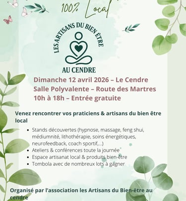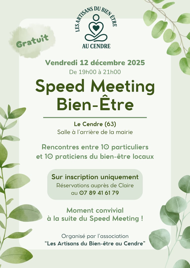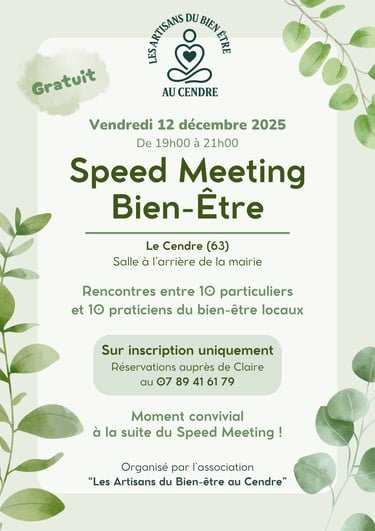 Le Speed Meeting Bien-Être est une rencontre participative organisée par Les Artisans du Bien-Être au Cendre pour permettre aux habitants et aux praticiens de se découvrir autrement.