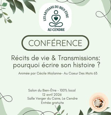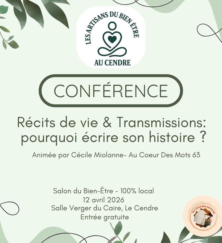 Cécile Miolanne, praticienne en Récit de Vie et fondatrice d’Au Cœur des Mots 63, vous propose une conférence pour découvrir le Récit de Vie, une démarche profondément humaine qui permet de mettre en mots son histoire, de transmettre ses souvenirs et de donner du sens à son parcours.