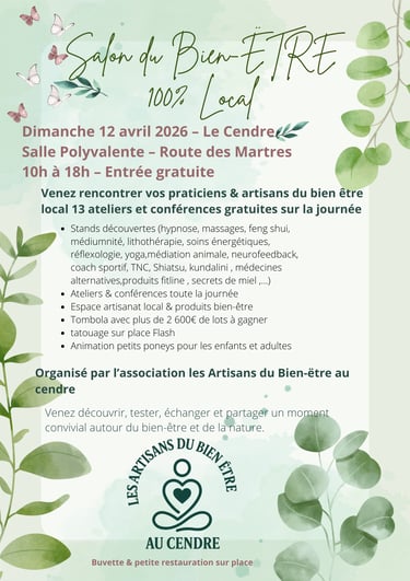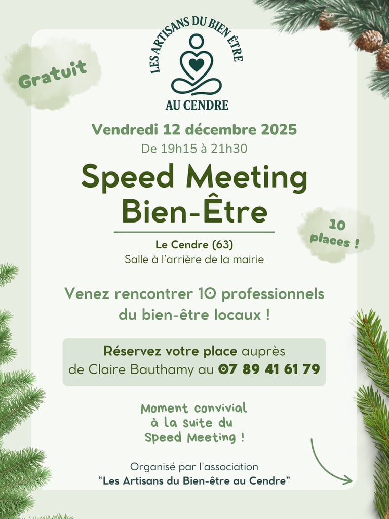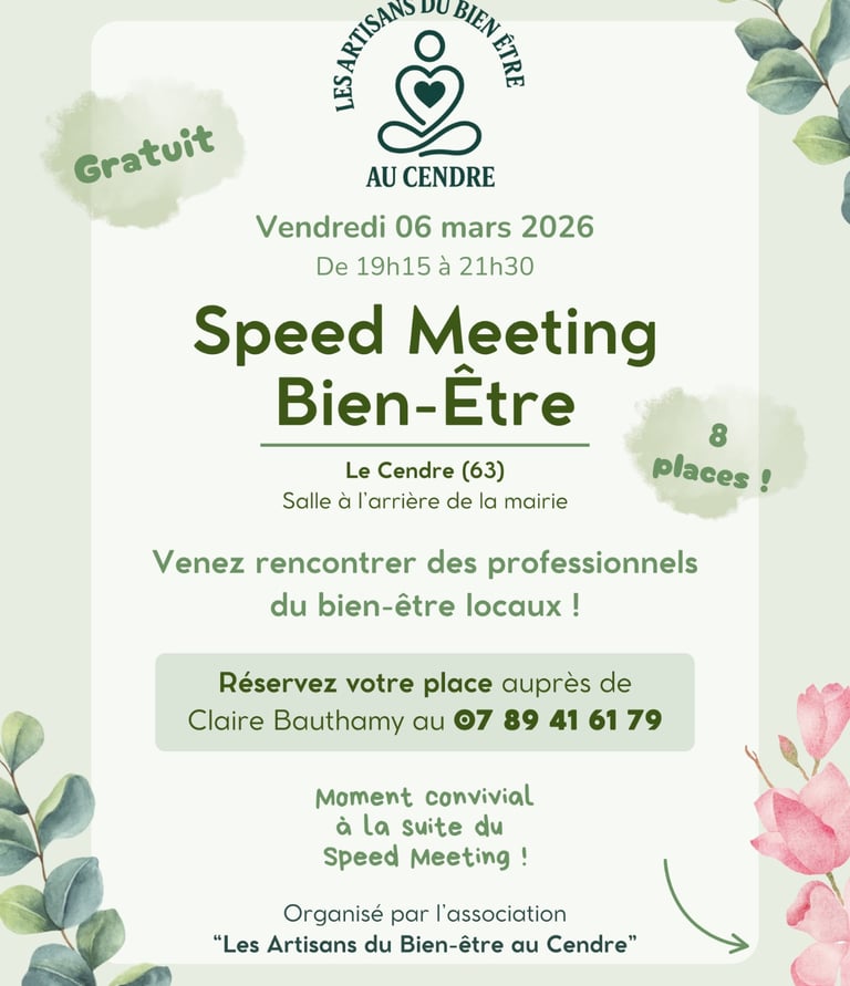 Le Speed Meeting Bien-Être est une rencontre participative organisée par Les Artisans du Bien-Être au Cendre pour permettre aux habitants et aux praticiens de se découvrir autrement.